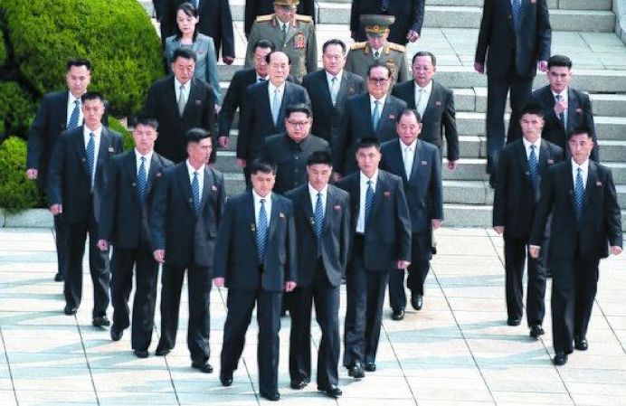 这12人第一次“火爆全球”还是在2018年4月27日举行的韩朝首脑会晤上,他们作为金元帅的“奔跑保镖”十分惊艳。