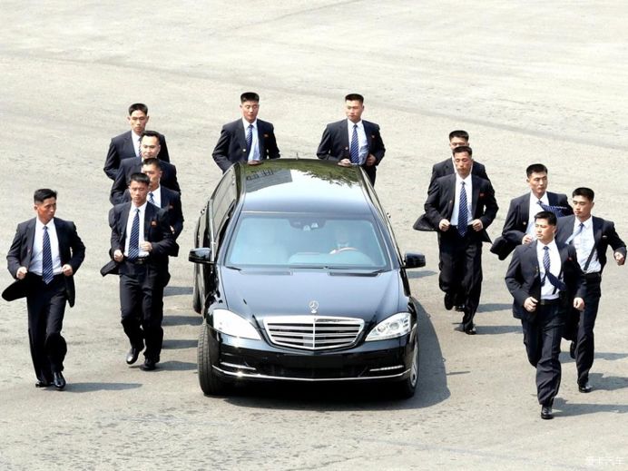 公开信息显示,朝鲜对金元帅的出行安全工作称为“路上护卫”。警卫队人员通常以V字形围绕着金元帅移动,他们在金元帅乘坐的车辆移动时也跟着奔跑护卫。