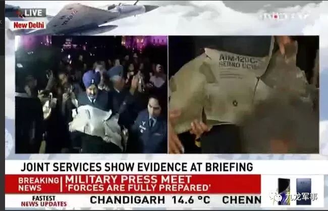 在28日晚的新闻发布会上,印军方拿出一块据称只有F16战机才能使用的AIM-120C5导弹残骸来证明巴军方F16战机参战了。