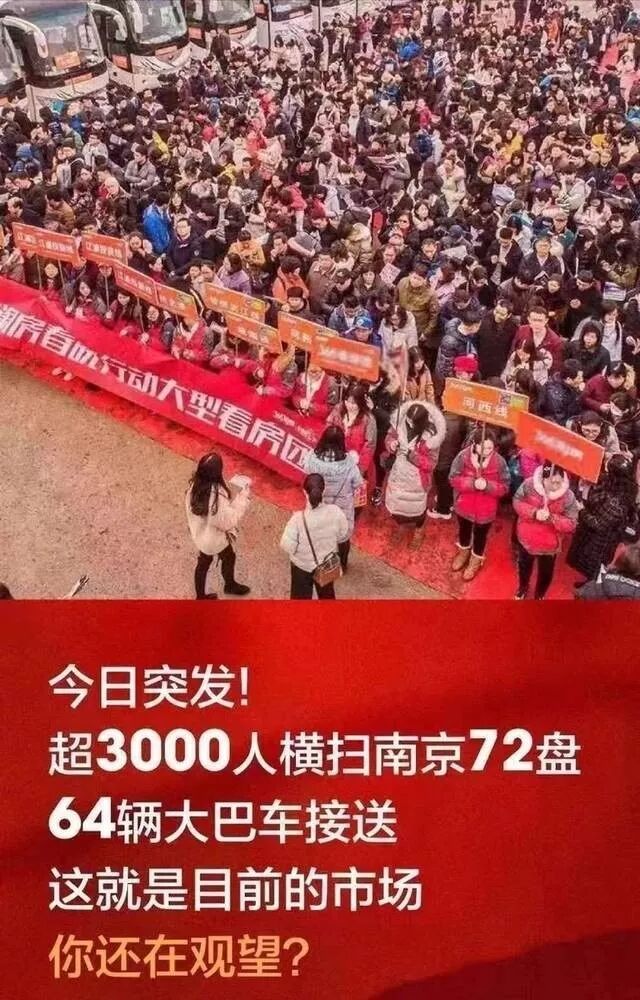 还有南京3000人的看房团,也有说5000人或6000人的。总之这张图最近也是火遍销售朋友圈。