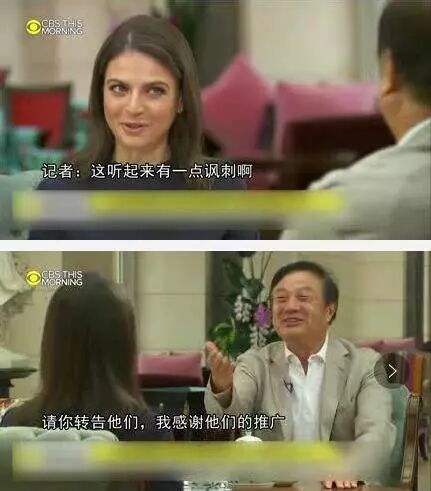 2月22日,在接受CBS专访中,当被询问到美国总统特朗普和副总统彭斯对华为的态度时,任正非态度从容:“我要感谢他们两位,他们两位都是美国很伟大的人物。本来5G是什么东西老百姓都不知道,结果他们这么伟大的人都在谈论5G……我们的影响力扩大了,我们的合同在增加……请你转告他们,我很谢谢他们给我们做了宣传。”