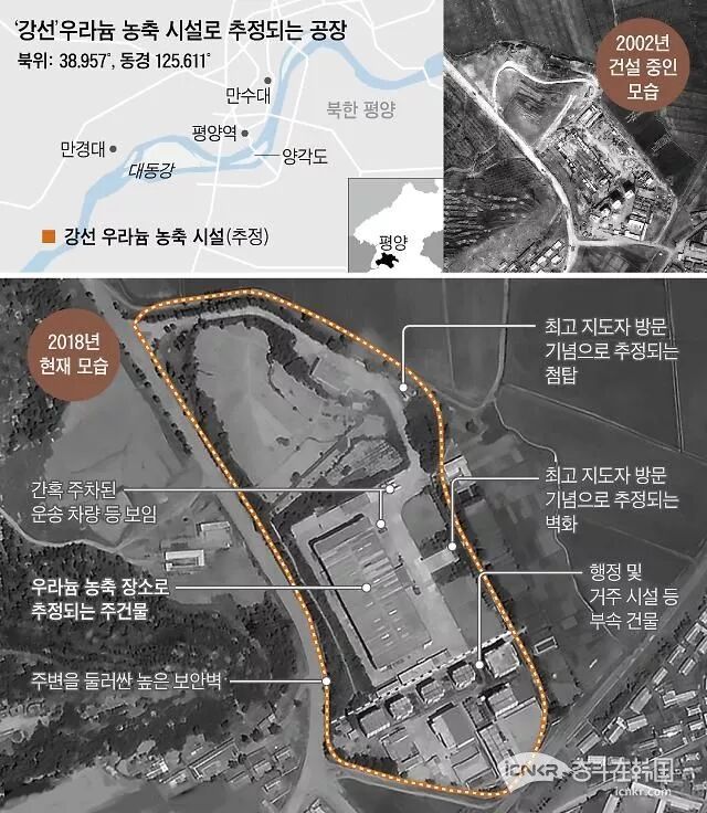 事实上,所谓降仙的核设施并非刚刚才被发现的。美国早在2002年就有拍摄的照片并一直关注。在2018年7月,美国外交专业媒体“The Diplomat”首次公开了一处推测为朝鲜秘密核设施的卫星照片,该媒体对从2001年起至今年拍摄的多张卫星照片进行分析后认为,该处秘密核设施位于朝鲜降仙。“The Diplomat”称,除了宁边和降仙,朝鲜境内还有第三处秘密铀浓缩设施。