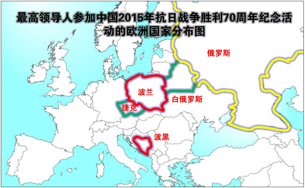 我们简单的给普及下那次出现阅兵的国家,因为大家或许会从中看出很多的东西:欧洲独联体国家领导人全部参加了;社会主义国家领导人也全部参加了;东亚、东南亚除了菲律宾和日本没有参加外,其它国家全部参加了;非洲很多国家最高领导人也参加了;南美洲的巴西、阿根廷、委内瑞拉最高领导人也参加了。但是欧洲仅有俄罗斯、白俄罗斯、波兰、捷克、波黑参加了,其它国家,包括法国、德国、英国、意大利和美国等国家仅仅是派出政府代表。