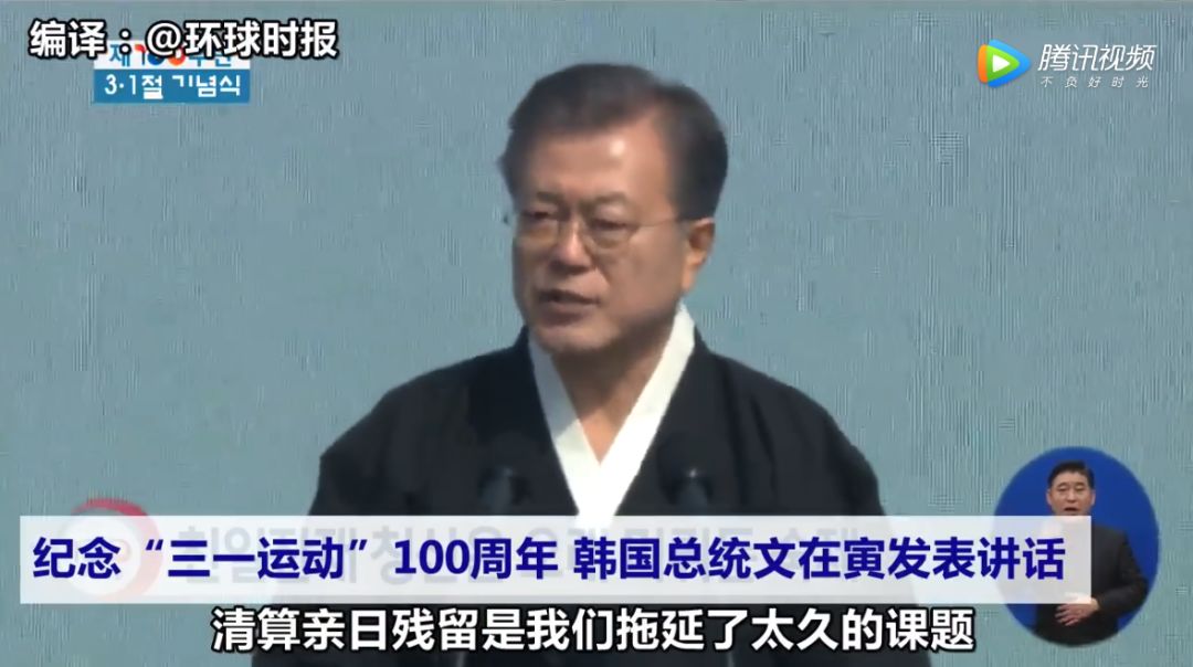 2019年3月1日韩国总统文在寅在出席抵抗日本殖民统治的“三一独立运动”100周年纪念仪式,并发表演讲,重点谈到了:清除“亲日”残渣。