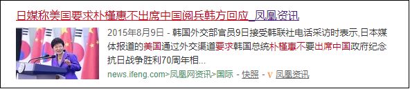 2015年9月,中国举行抗日战争胜利70周年纪念活动时候,在西方国家普遍缺席的时候,朴槿惠顶住了美国的压力,参加了中国阅兵。