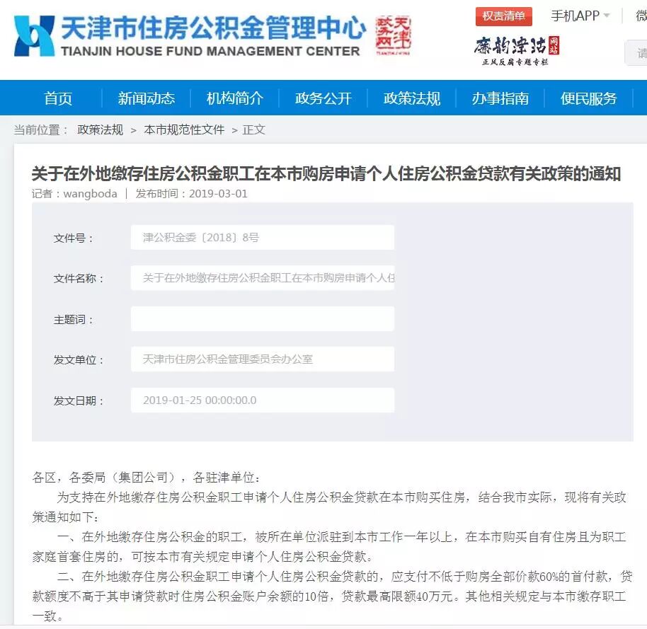 3月1日,天津公积金管理中心发布了“关于在外地缴存住房公积金职工在本市购房申请个人住房公积金贷款有关政策的通知”。