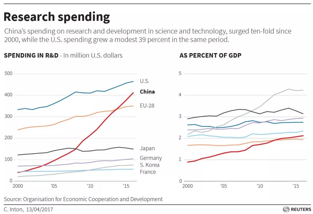 如果单单追求经济发展速度,引进技术的效率更高,成本一般只有发明新技术的1/3。但现在的情况是,在有些领域,没什么技术好引进了;在另一些领域,他国感到了威胁,最核心的技术不让你引进,只有自己撸起袖子干。