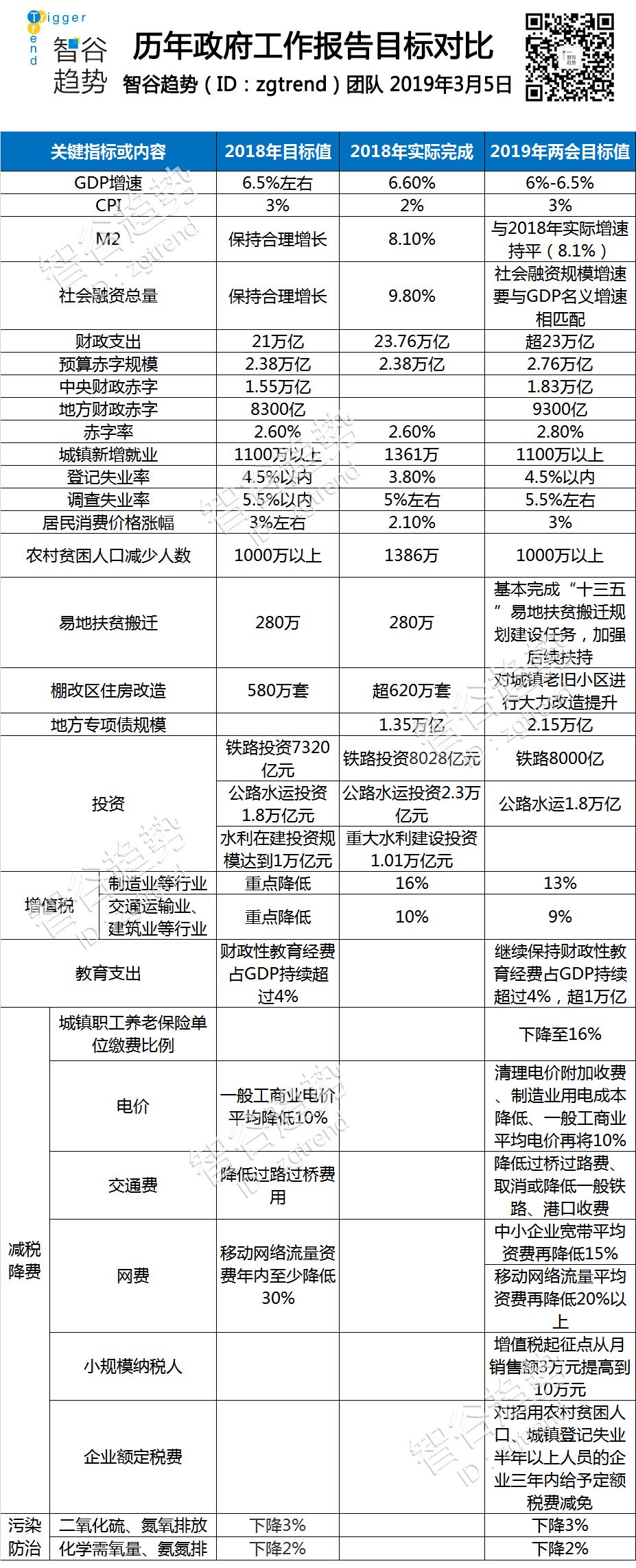 今年雄心明显消减,直接定一个区间值6%-6.5%,意思是今年最高也不超过6.5%了,甚至有可能低至6%。