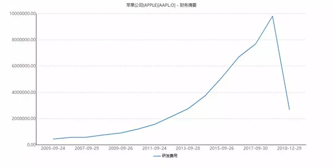 ▲面对即将到来的5G时代,苹果的研发投入大量减少(数据来源:Wind资讯)