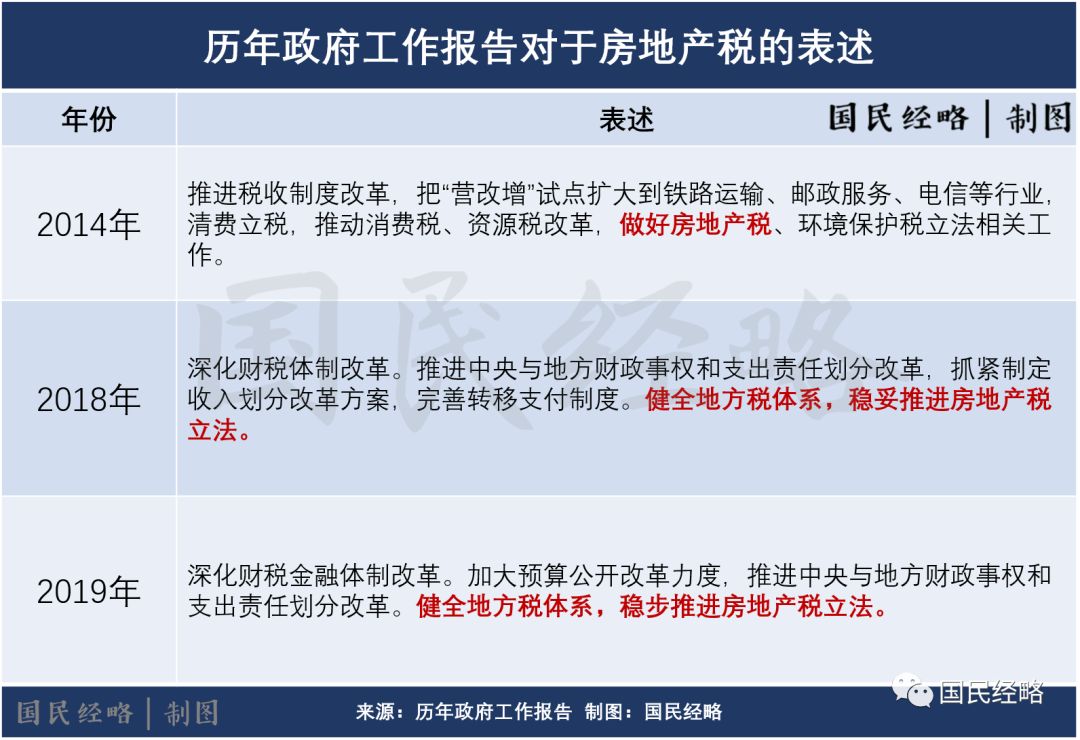 2019年政府工作报告,明确提出“稳步推进房地产税立法”。这是继2014年和2018年之后,政府工作报告第三次提及房地产税。