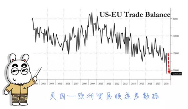 2018年美国辛辛苦苦打贸易战,结果上半年逆差不减反增,美欧逆差数据: