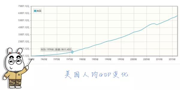 例如美国,1976年人均GDP就超过8000美元、1978年超过1万美元、1987年超过2万美元、1996年超过3万美元、2004年超过4万美元、2012年超过5万美元,现在已经无限接近6万美元了。