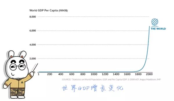 大家可以看到,在漫长的农业经济时代,全世界的GDP始终在一个非常低的水平上运行,一两千年都没什么大增长。那时代,世界上最有钱的是人口和土地大国中国,其次是印度。因为农业经济时代,人口和土地才是财富的基础。