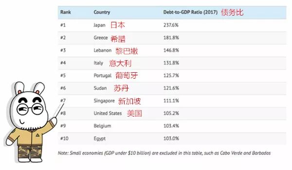 2017年,各国债务/GDP数据。排名第一的日本国家债务,已经达到GDP的237.6%。2018年一季度统计:全球债务247万亿美元!占全球GDP的318%!