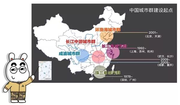 像中国,就是伴随着经济的发展,逐步衍生出:珠三角、长三角城市群;2001北京申奥成功后,京津冀城市群开始增速,再加上最近的雄安新区,构成了现在的大环渤海城市群;再之后,就是成渝(成都重庆)城市群、长江中游城市群(武汉长沙)。