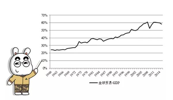 可以说,战后全球经济长期大发展,是离不开全球化的红利的。我们用全球贸易/GDP,来看下全球化的发展: