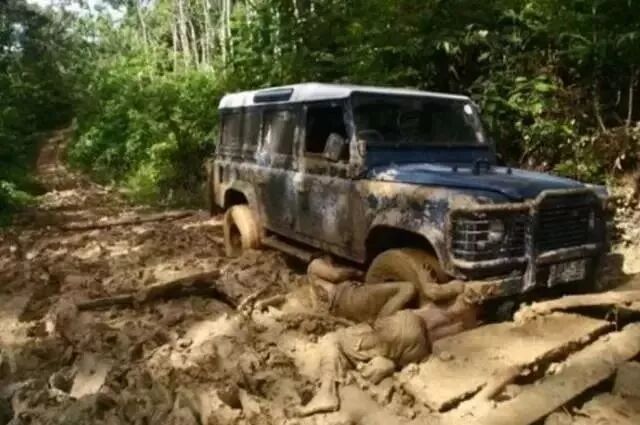 在印度尼西亚的加尼曼丹岛,华为供应链物流经理为新项目考察仓库和路况,途中遭遇吉普车深陷泥沼,于是趴在泥泞中,清除障碍。人和泥混为一色的照片,正是华为员工在海外拼搏的真实写照。