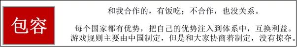 所以说,中国的全球化综合来看就是“包容”共处。愿意和中国合作的,可以求同存异,互换优势和利益。