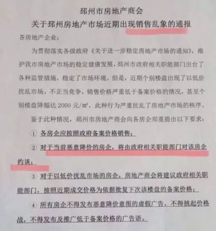 此事被曝光后,一石激起千层浪。当地房管部门第一时间回应称,已约谈房地产商会相关负责人,责成收回通报。