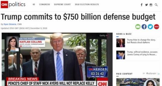 据环球网转引美国“Axios”网站3月8日援引美政府消息人士的话称,美国总统特朗普领导的政府将于3月11日公布2020财政年度的国防预算(2019年10月1日至2020年9月30日),预算金额高达7500亿美元。而美国2019财政年度的国防预算为7160亿美元。这些钱,白宫将为五角大楼拨出5760亿美元的基本开支,其余资金将用于资助国外的行动。