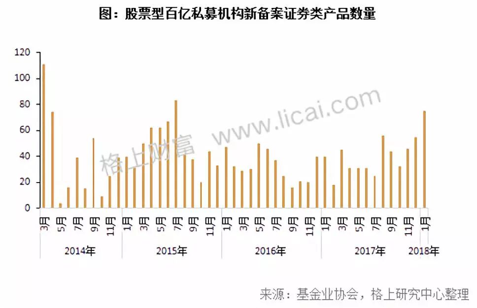 格上曾经做过统计,我们可以看到,2015年7月和2018年1月同样也是这些私募巨头的产品备案数量高峰期。