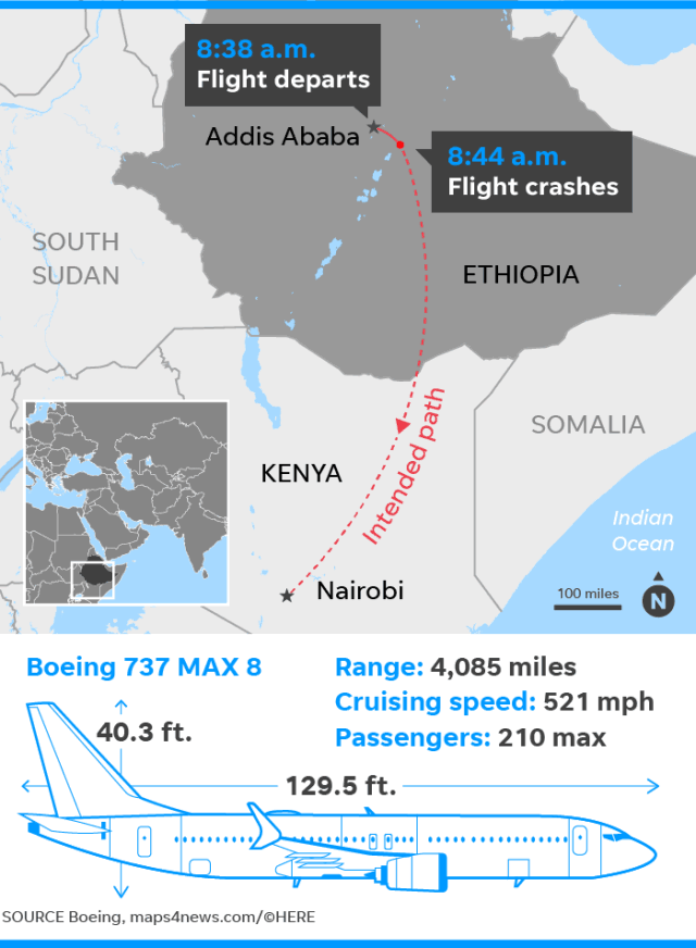 3月10日,星期天,埃塞航空公司一架波音737 max-8型的飞机,在起飞后不久坠毁,157人无一生还。