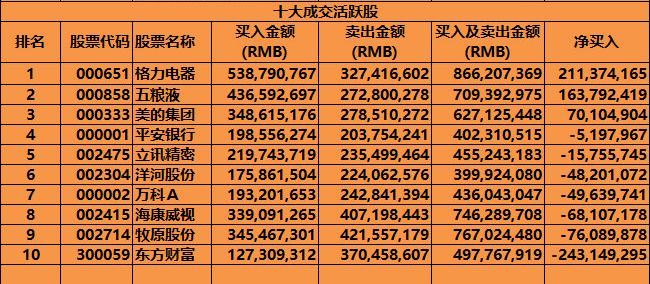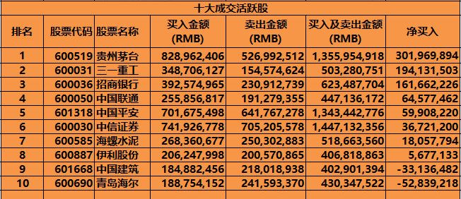 沪股通,深股通十大成交股资金流向如下图。