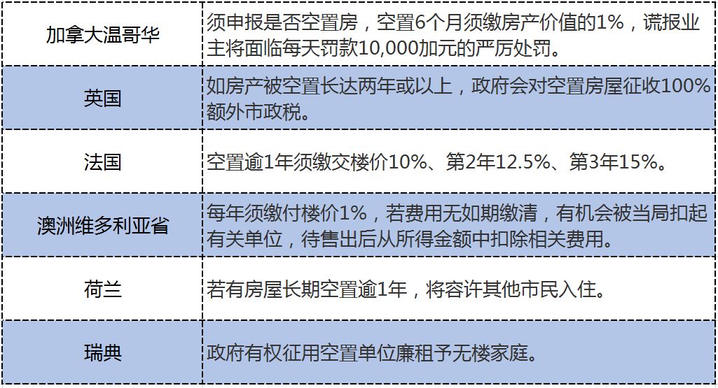 比如,法国对空置逾1年的房屋,要征收楼价10%、第2年12.5%、第3年15%的空置税。