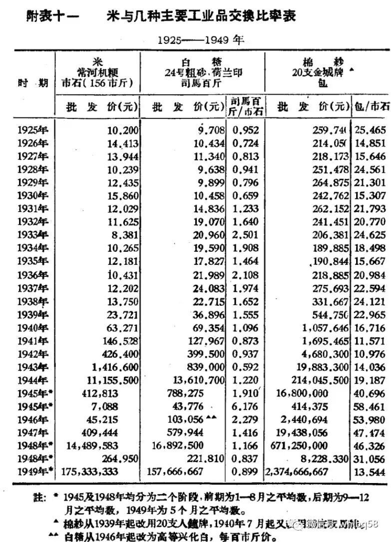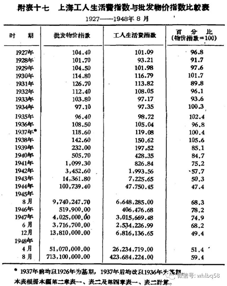 “惊呆文”看似举出了几个名人的回忆录和文章以支撑其数据的可靠性,但真正要证明这些数据的真实性还必须如该文所指出的《上海解放前后物价资料汇编》(但“惊呆文”并未展示该文件及其图标),因为只有这部正式的历史文献才最能证明1949年前民国的真实情况。为此笔者认真阅读了这本《上海解放前后物价资料汇编》(以下简称《汇编》),结果与该文所举的数据正好相反。