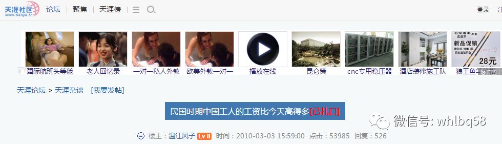 其实,“惊呆文”最初出现于2010年3月3日的《天涯论坛》,当时的标题是“民国时期中国工人的工资比现在高的多?”