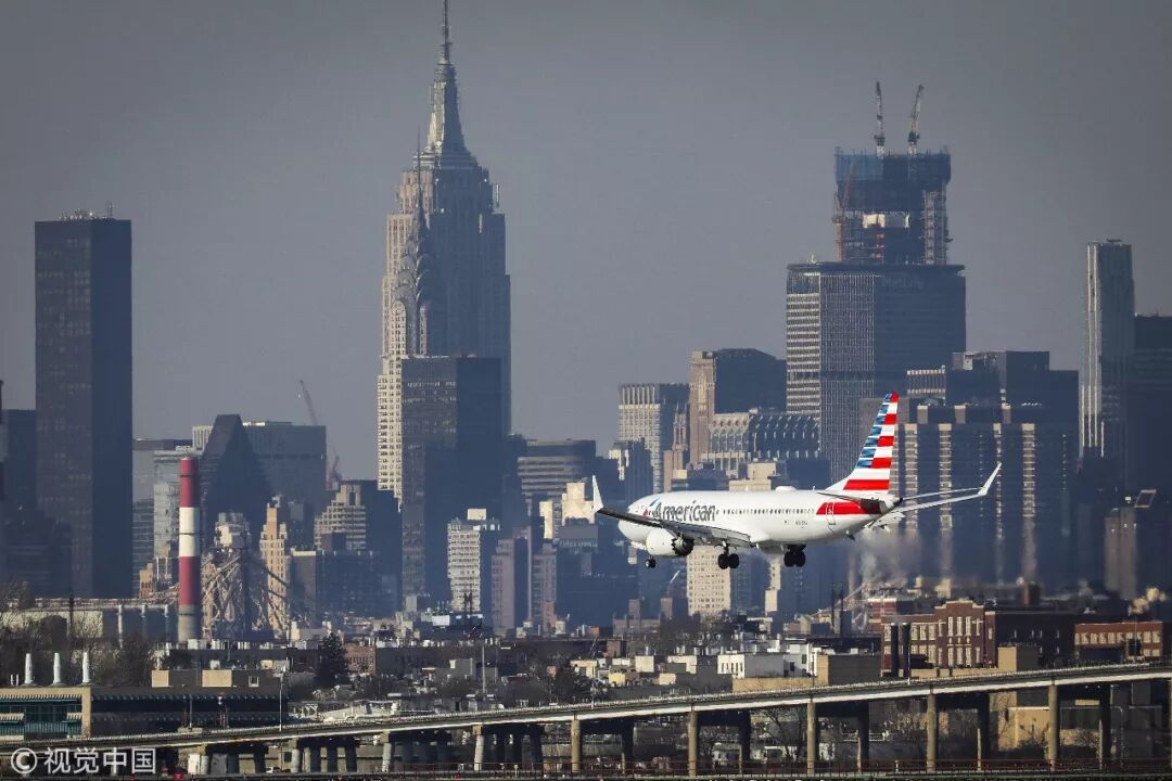 ▲3月11日,美国纽约,一架波音737 MAX 8飞机正准备在纽约皇后区机场降落。(视觉中国)