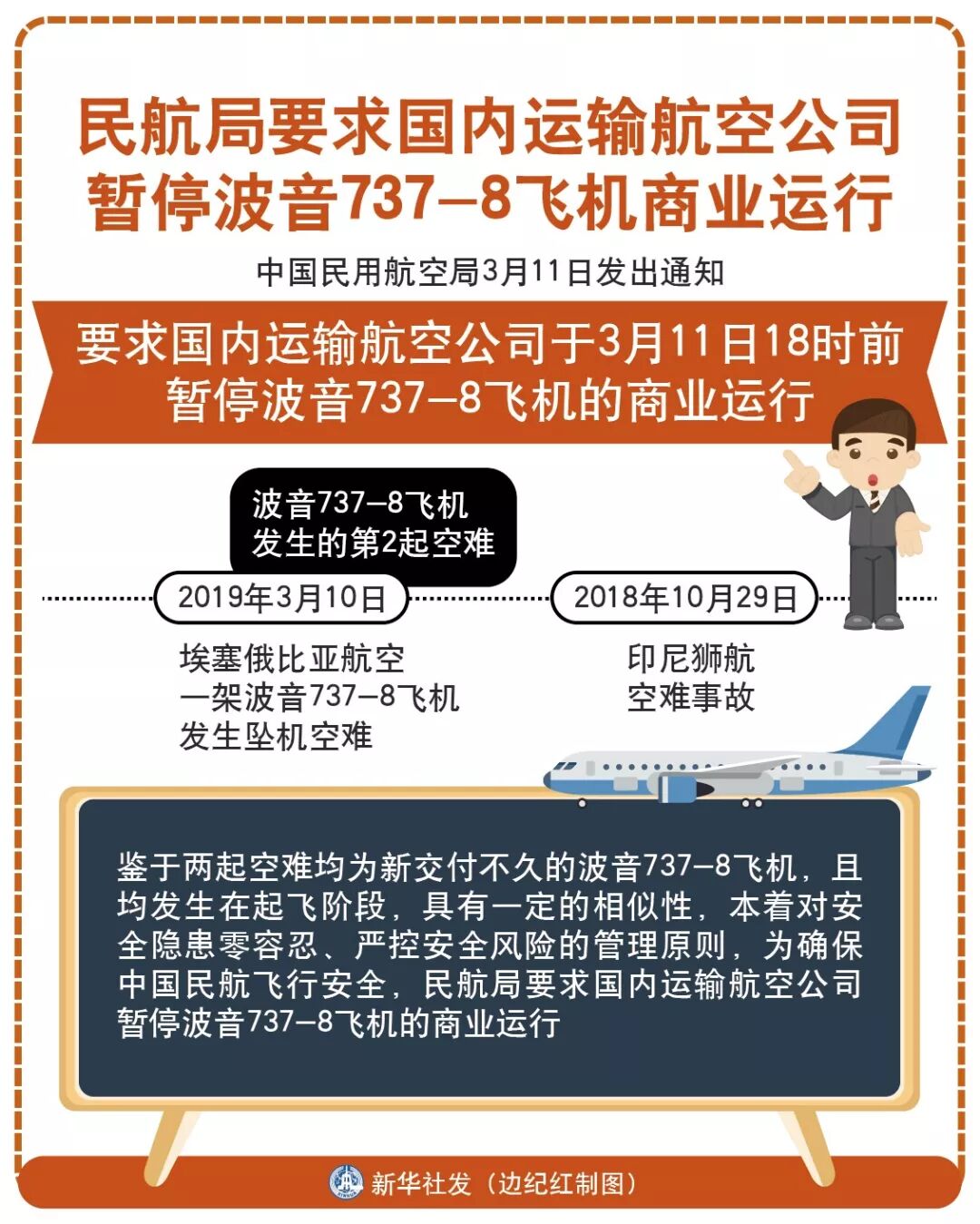中国民用航空局11日发出通知,要求国内运输航空公司于11日18时前暂停波音737-8飞机的商业运行。