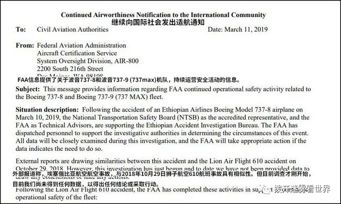 美国联邦航空管理局向全世界宣称:737MA仍然符合适航要求。