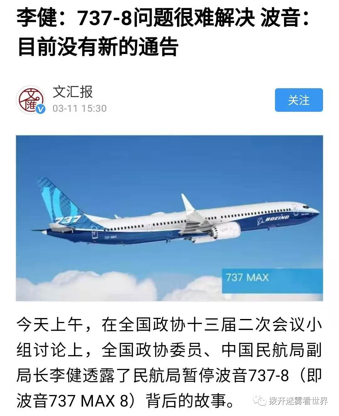 据李健介绍,在作出该决定前,中国民航局已与波音公司及美国联邦航空局进行了沟通。由于美方一直很难下定决心,民航局只得率先做出停飞该机型的决定并致函告知美方,同时表示希望美方可尽快重新确认保障波音737-8飞行安全的有关措施。一旦问题可以解决,再重新恢复该机型的商业飞行。