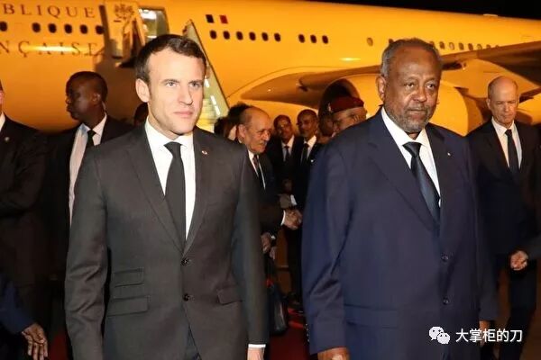 法国总统马克龙抵达吉布提开启对东非的访问,吉布提 总统伊斯梅尔·奥马尔·盖莱在机场欢迎马克龙