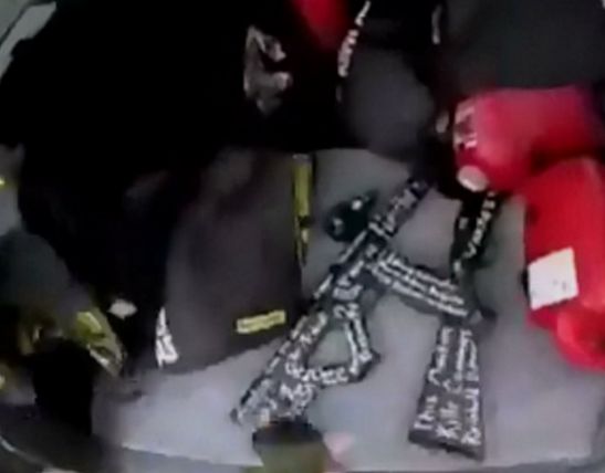 到达目的地,凶手立马下车打开后备箱,清楚的看到里面放置着一把步枪、一把霰弹枪以及不少弹药。