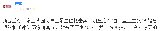 下午1点40分,新西兰基督城突发大规模枪击事件,据观察者网报道,已造成49人死亡,27人受伤!