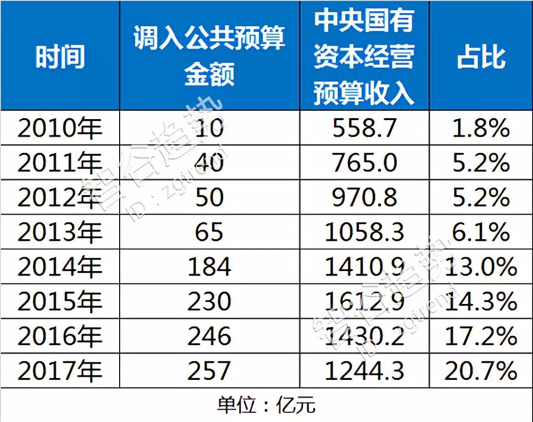 而真正反馈给社会民生,花在全国老百姓身上的钱(也就是中央国有资本经营预算收入当中,调入公共预算收入的部分),少得可怜。