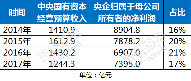 根据国家财政部的数据,从2014年到2017年,这些央企分别上缴1410亿、1612亿、1430亿、1244亿的利润。