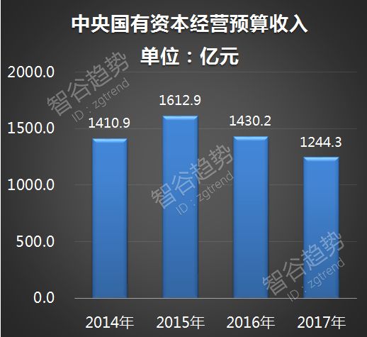 以17年为例,当年度收上来的中央国有资本预算收入1244亿元: