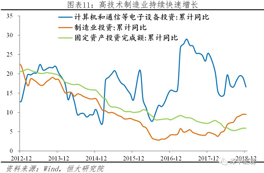 与此形成鲜明对比的是,新产业新业态快速崛起,全球最好的新经济就在中美,全球最好的投资机会就在中国。2018年高技术制造业、战略性新兴产业和装备制造业增加值分别比上年增长11.7%、8.9%和8.1%,增速分别比规模以上工业快5.5、2.7和1.9个百分点。新兴工业产品产量快速增长,铁路客车、新能源汽车、智能电视、锂离子电池和集成电路分别增长183.0%、40.1%、18.7%、12.9%和9.7%。