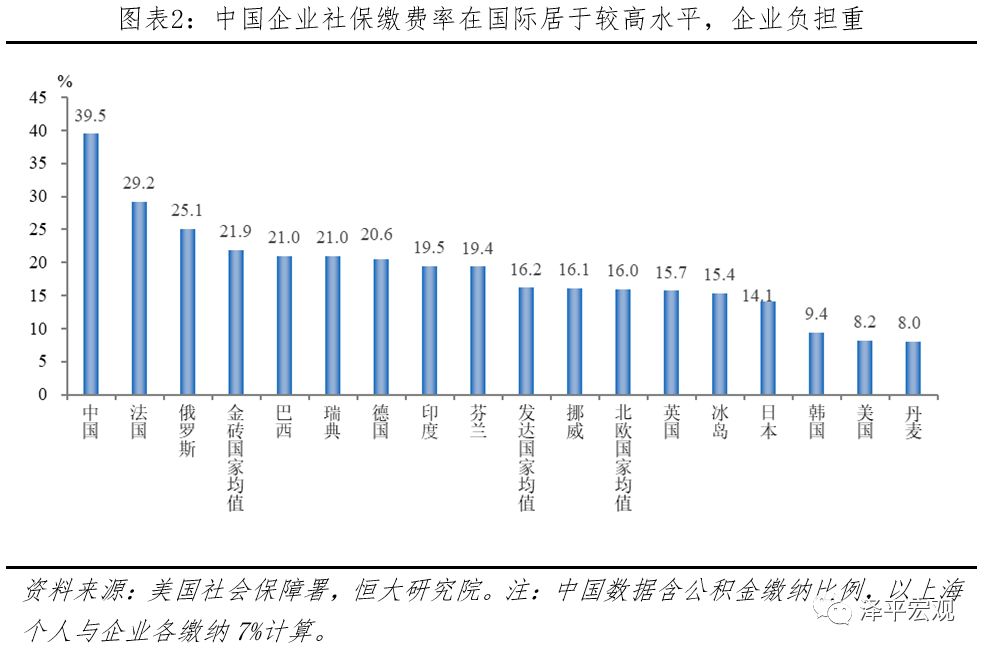 积极财政的亮点是大幅度减税降费,减少税收和社保负担规模2万亿将创新高,支持制造业和小微企业,倒逼政府削减一般性支出。根据世界银行数据,2018年中国企业总税率(占利润比重)为64.9%,较2017年下降2.4个百分点,但与主要国家比仍严重偏高,较世界平均水平高24.5个百分点,较美国、越南分别高21.1和27.1个百分点,制造业面临转移压力。其中企业的社保缴费率在全球居于前列,为39.5%,高于发达国家平均的16.2%,有必要继续推动减税降费。
