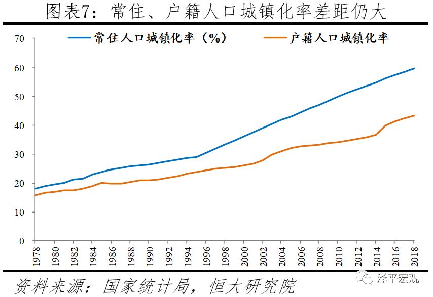 常住人口与户籍人口城镇化率差距仍大,市民化进程将加快推进。新型城镇化规划要求,到2020年常住人口城镇化率、户籍人口城镇化率分别达60%、45%,常住人口、户籍人口城镇化率差距较2012年的17.3个百分点缩小2个百分点左右,努力实现1亿左右农业转移人口和其他常住人口在城镇落户。2018年中国常住人口城镇化率、户籍人口城镇化率分别为59.58%、43.37%,差距为16.2个百分点。当前中央要求,放开放宽除北京、上海外的城市落户限制。