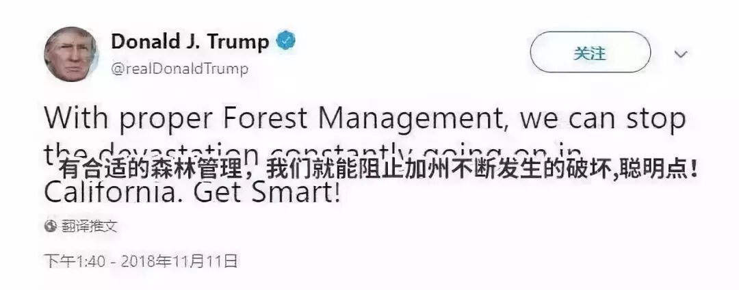 △上图:2018年山火灾难中,美国总统在推特上和加州地方官员互相指责并推卸责任。