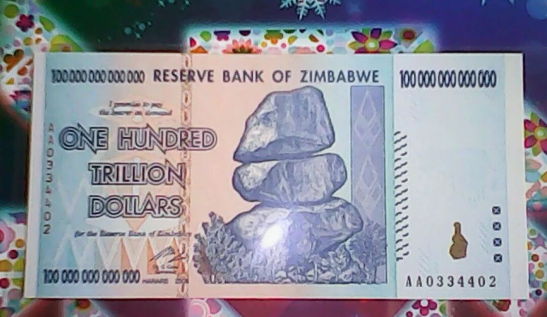 当年津巴布韦通货膨胀时发行的面额100万亿的钞票,您能数得清多少个零吗?