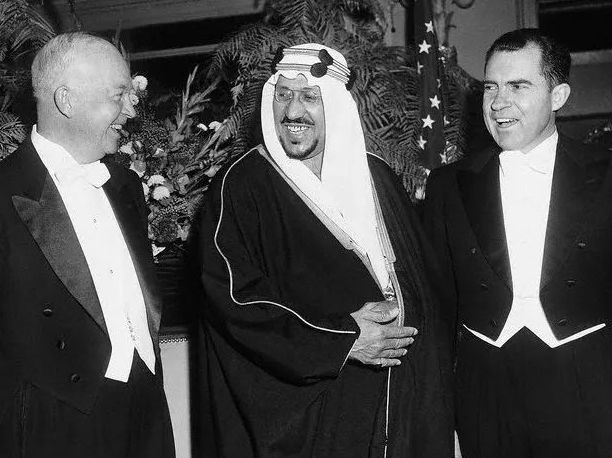 1950年,沙特同意与美国五五分成阿美石油收益,次年,美国在沙特建立永久军事基地,两国盟友关系确立。