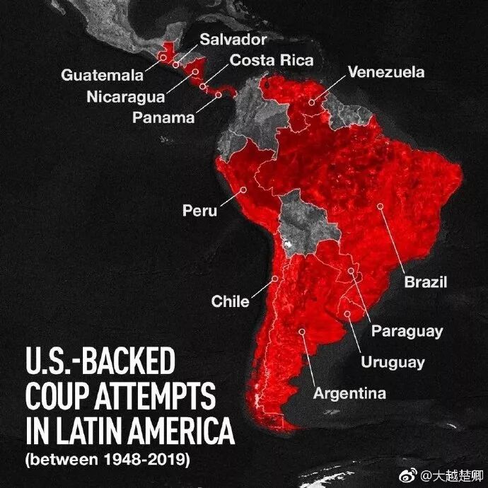 1948年到2019年间,美国支持过拉美国家政变的国家