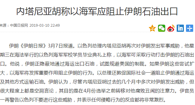 所以,在“豁免期”结束后,美国联手其他国家,比如以色列,用武力阻止伊朗石油出口的可能极大。
