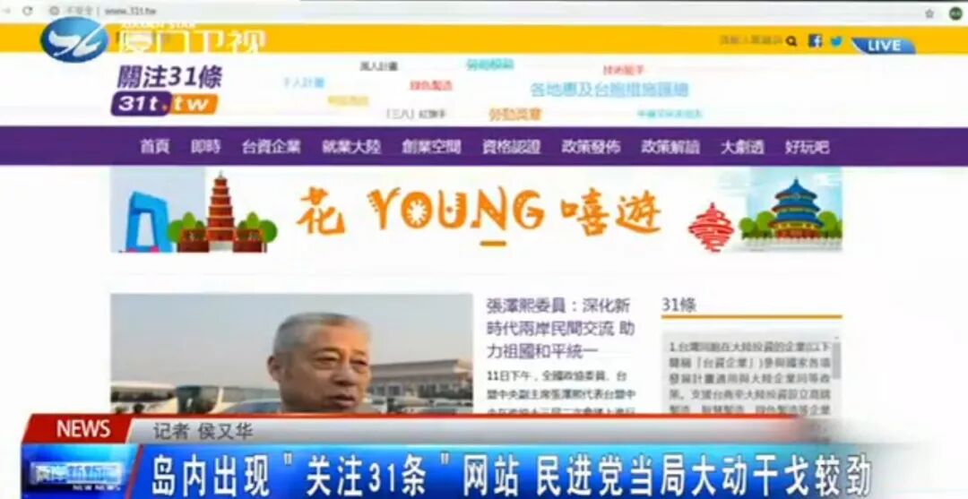 第二件,台湾当局封锁了一个网站。什么网站呢?是岛内一个叫做“关注31条”的网站,大多关注的是大陆去年推出的惠及台胞“31条措施”。不出意料,岛内一片挞伐之声。