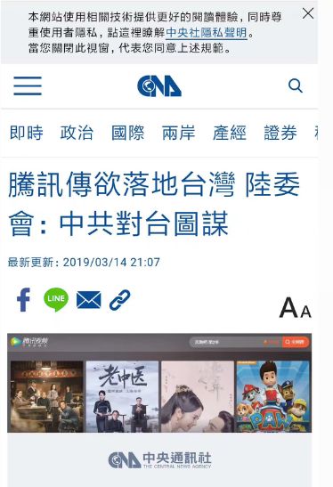 第一件,大陆视频平台腾讯和优酷即将登陆台湾的消息,让岛内某些人相当恐慌,就像下图这样: